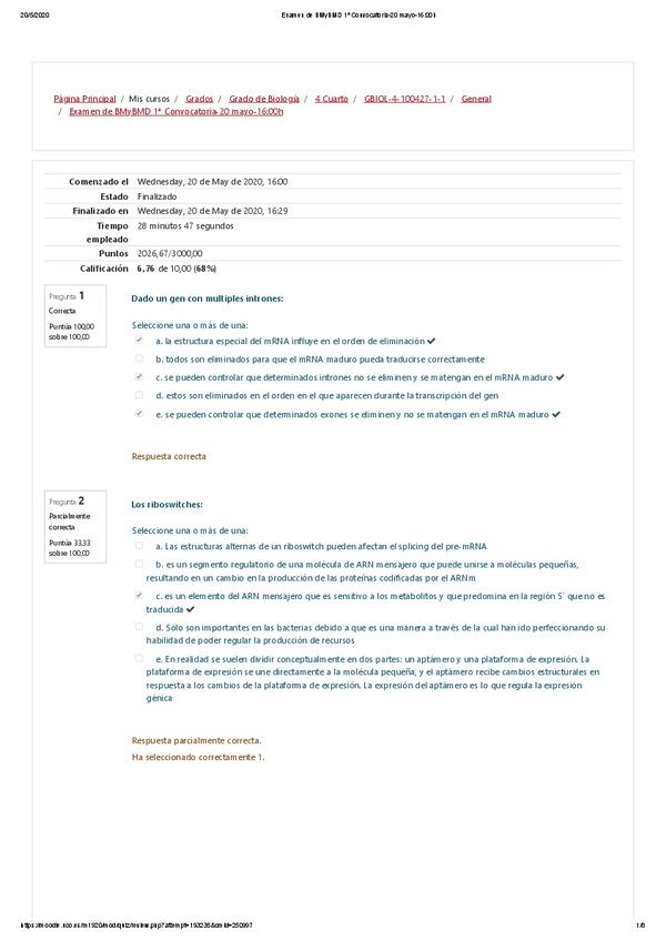 He publicado nuevos examenes de 4º Biología molecular y Biomedicina: Informe | Examen 26/MAYO.pdf