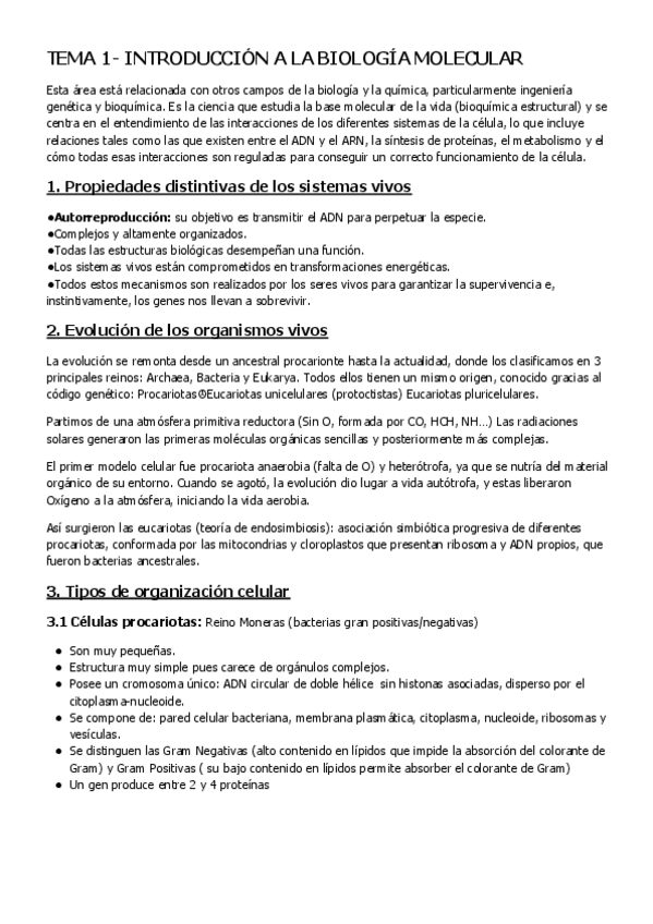 He publicado nuevos apuntes de 1º Biología Molecular y Celular: Temas Biología molecular
