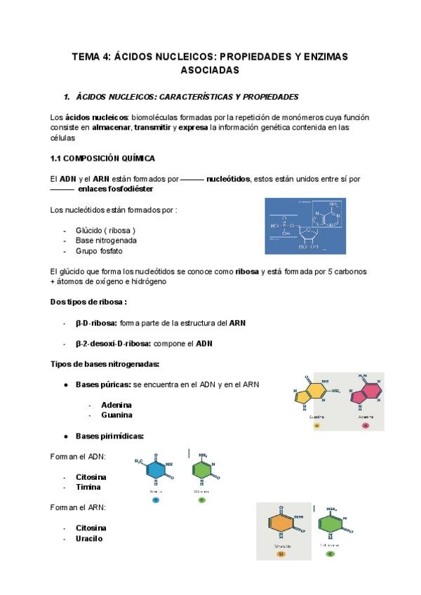Tema 2 de Biología molecular, ADN y ARN y enzimas asociadas