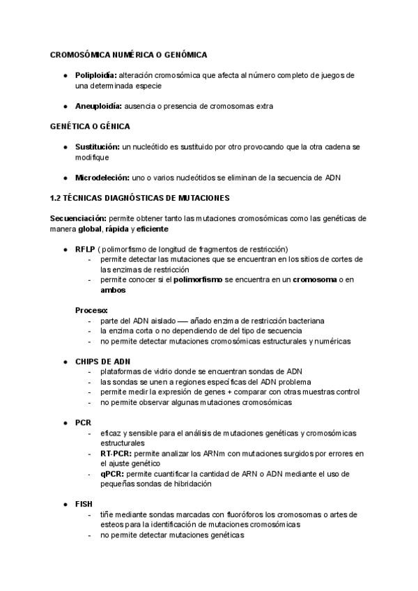 Resumen UD2 Caracterización de los procesos que se realizan en laboratorios de biología molecular y citogenética.