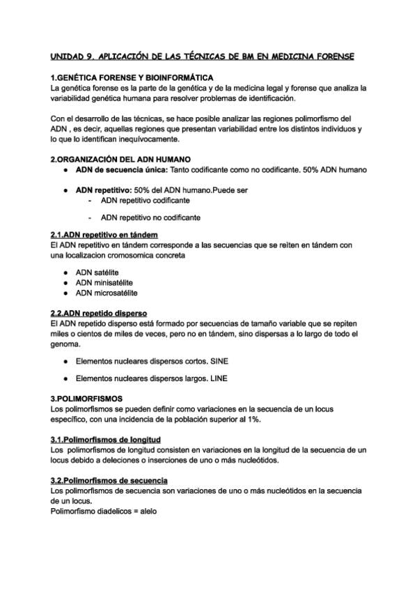 Biología molecular en medicina forense, organización del ADN en el cuerpo humano, los polimorfismos, técnicas de detección de los polimorfismos y estudios de paternidad.