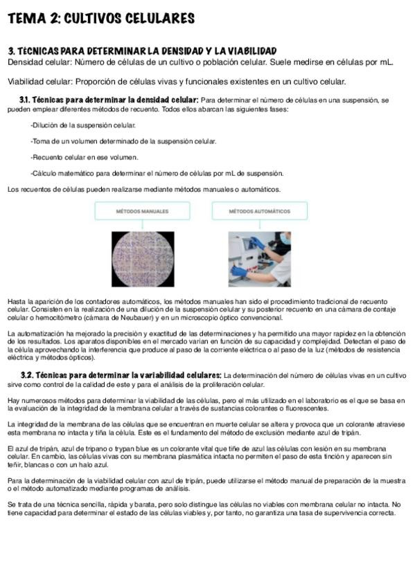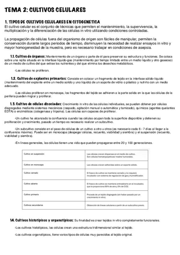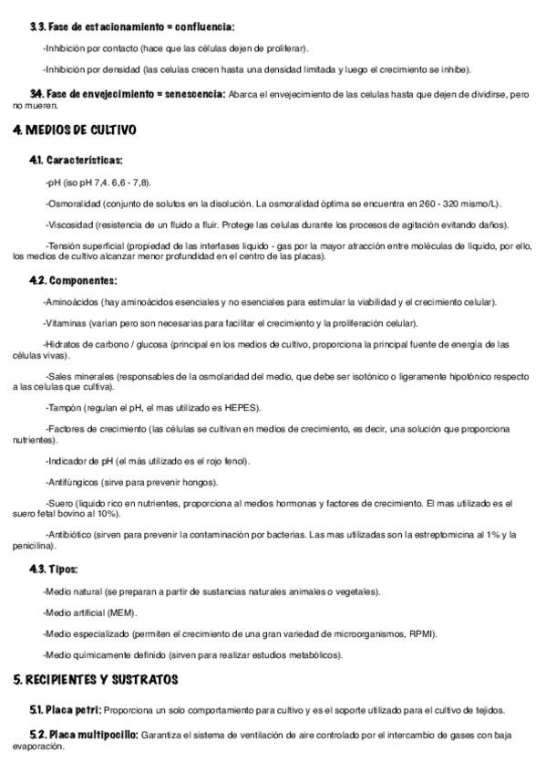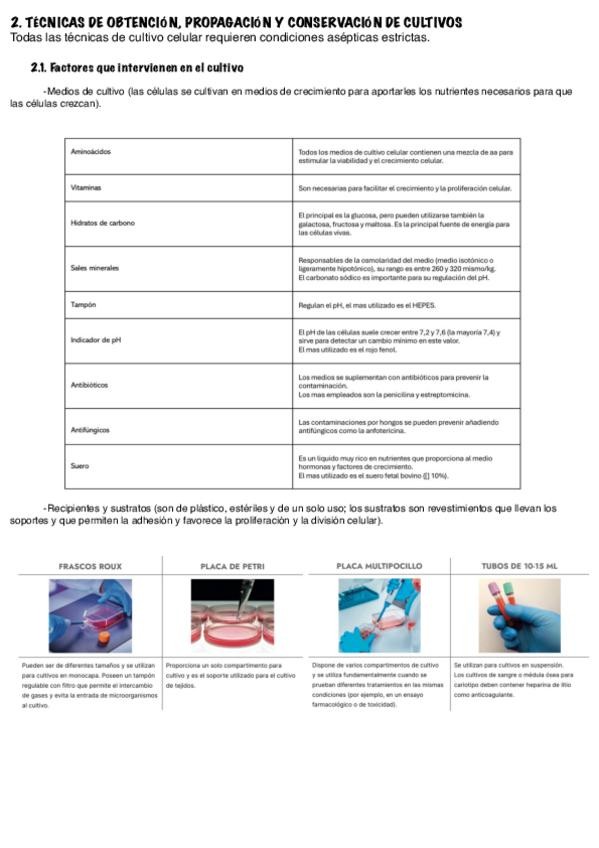 Resumen / esquemas: - T. 4: SEGURIDAD EN LOS LABORATORIOS DE RESIDUOS PELIGROSOS. - T. 5: USO EFICIENTE DE LOS RECURSOS. - T. 6, 7, 8, 9: Tipos de cultivos celulares. Tipos de células. Medidas de cultivos. Técnicas de obtención, mantenimiento y propagac