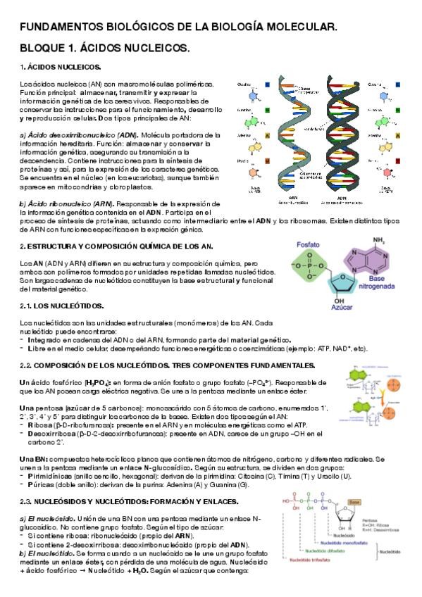 Primer tema. Todo lo básico obligatorio saber sobre los ácidos nucleicos y su aplicación en Biología Molecular