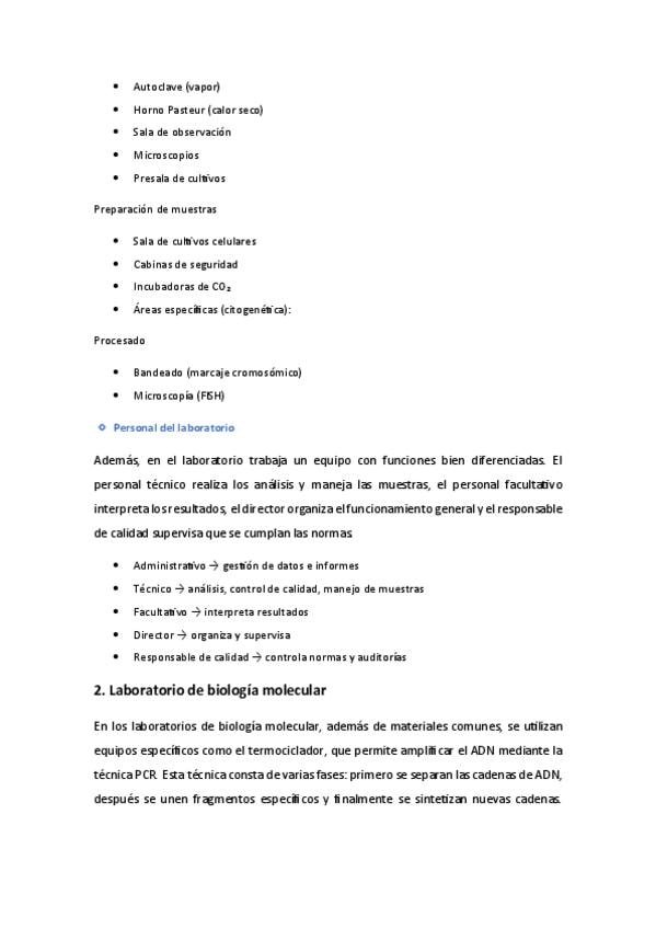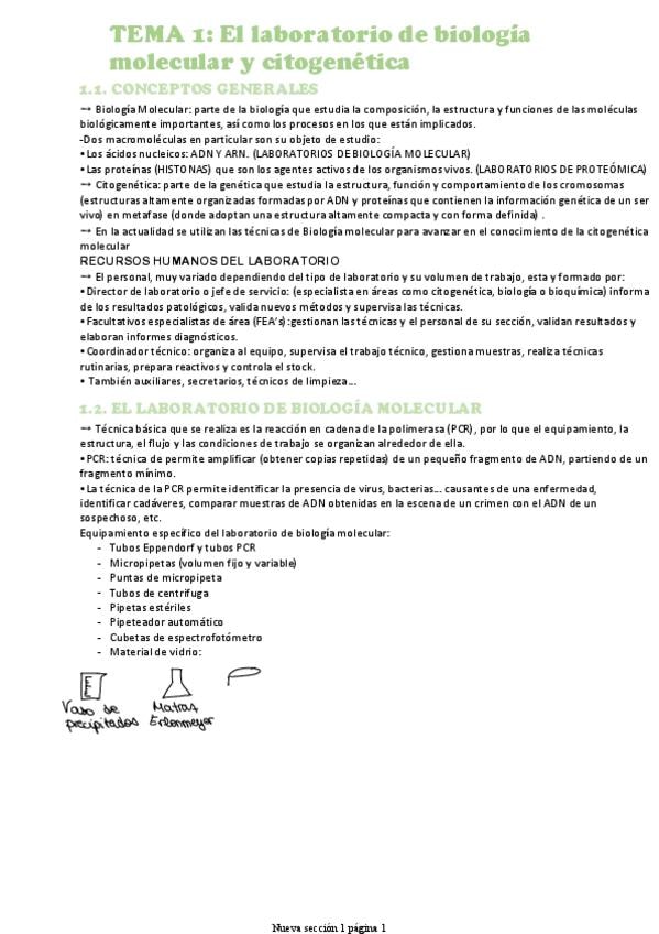 Apuntes tema 1 y 2: LABORATORIO DE BIOLOGÍA MOLECULAR Y CITOGENÉTICA // ÁCIDOS NUCLEICOS Y ENZIMAS ASOCIADAS de biologia molecular y citogenética de laboratorio clínico y biomedico