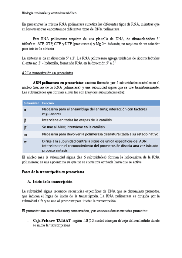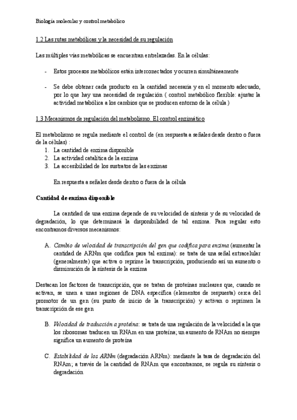 APUNTES BIOLOGÍA MOLECULAR Y CONTROL METABÓLICO