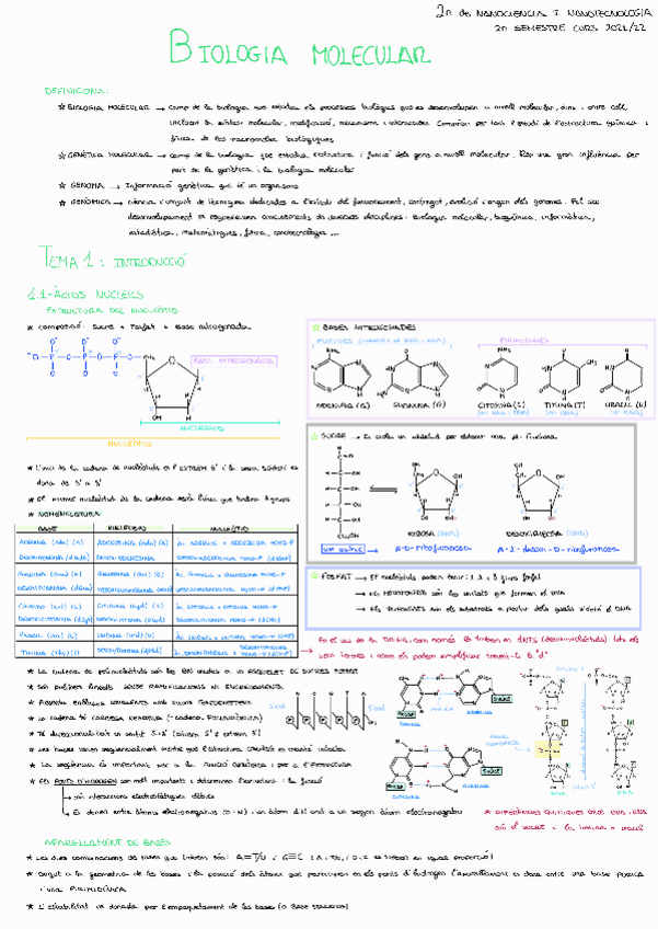 Tot el temari demanat de biomol al primer parcial. Recull aportacions del professorat i les transparències.