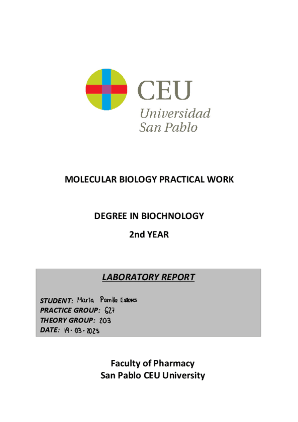 He publicado nuevos apuntes de 2º Biología Molecular: Lab-Report-Biologia-molecular.pdf
