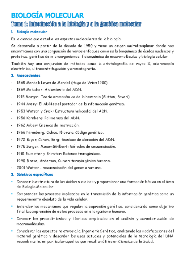 TEMARIO COMPLETO BIOLOGÍA MOLECULAR