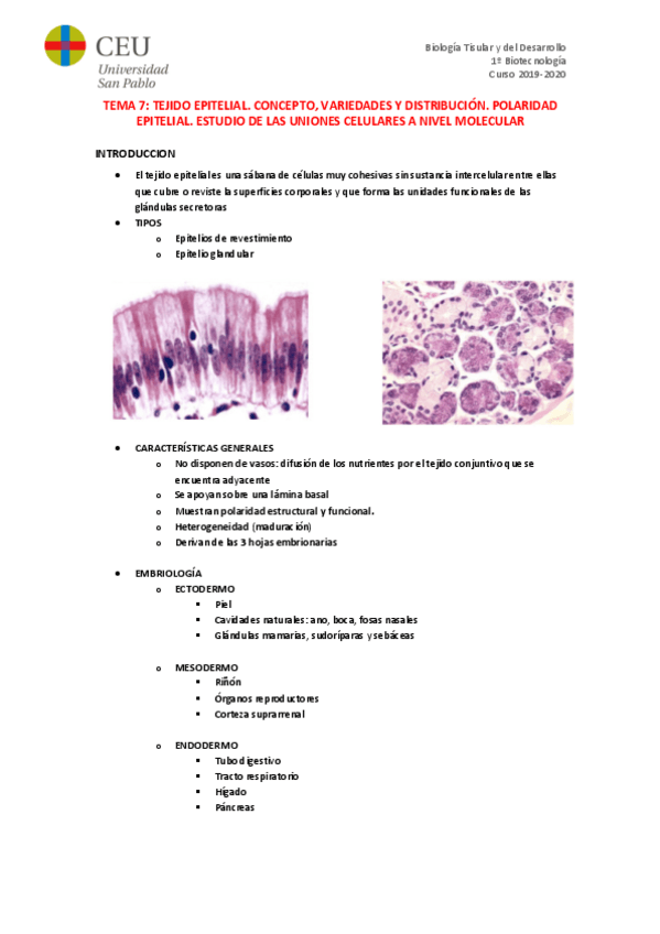 Biología Tisular y del Desarrollo