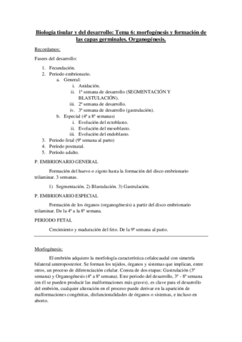He publicado nuevos apuntes de 1º BIOLOGIA TISULAR Y DEL DESARROLLO: temas embriología