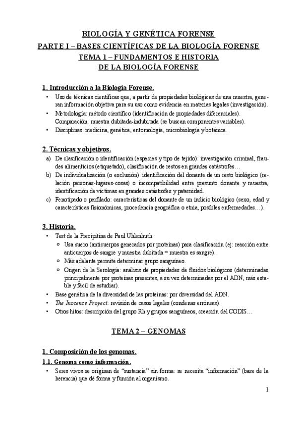 Temario Biología y Genética Forense