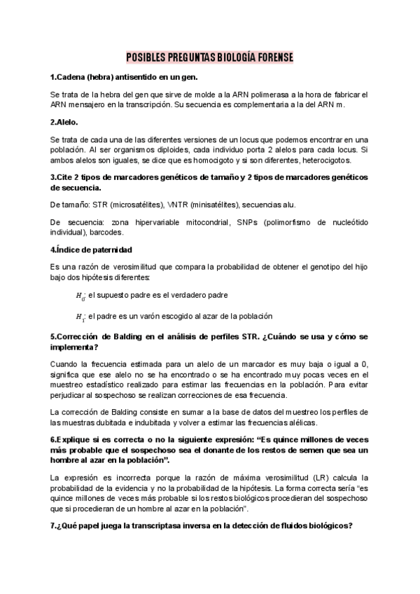 He publicado nuevos apuntes de 4º Biología y Genética Forense: INFORME GENÉTICA FORENSE.pdf
