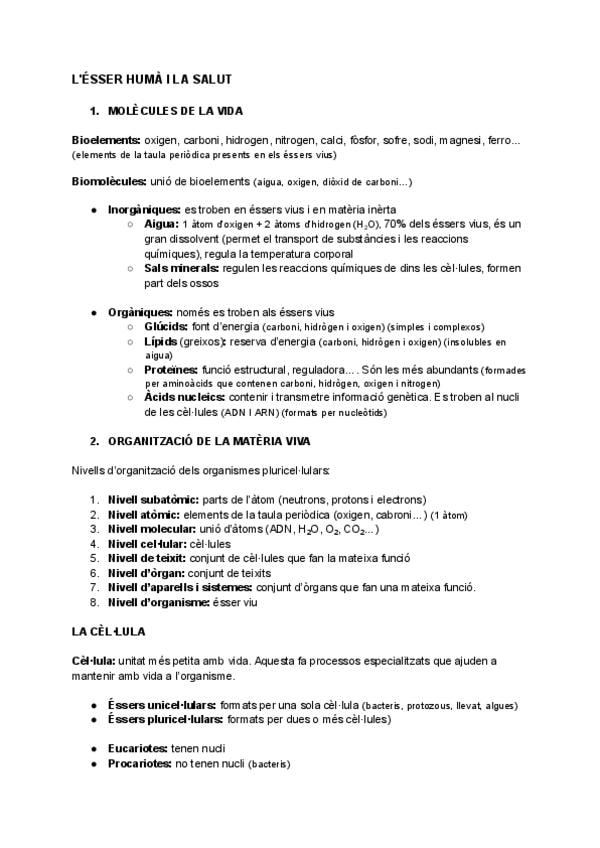 Punts en català. Nivell 4t d’ESO amb una mitja de 10 d’una futura metgessa. En aquest fitxer es parla de la classificació dels éssers vius, dels bioelements i les biomolècules i, dintre d’aquestes, de la matèria orgànica (es desenvolupen les proteïnes, gl