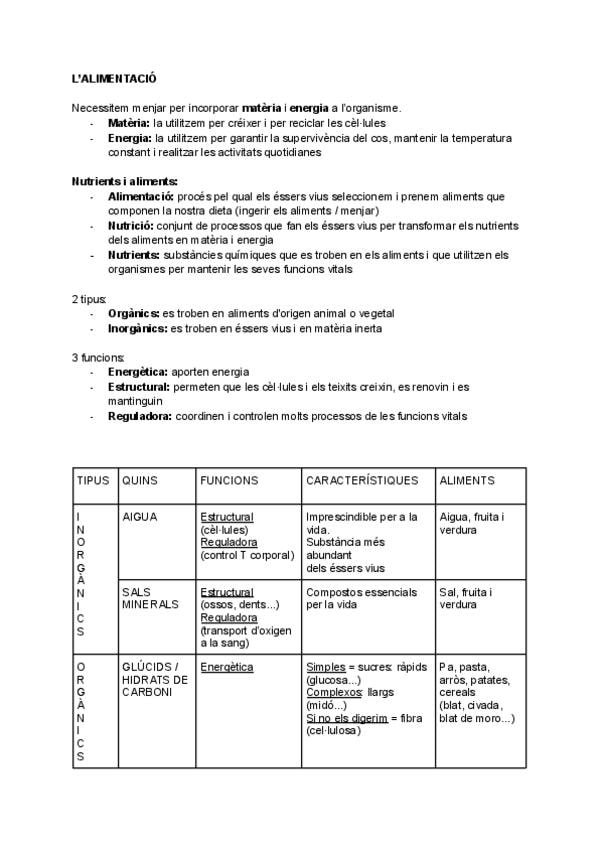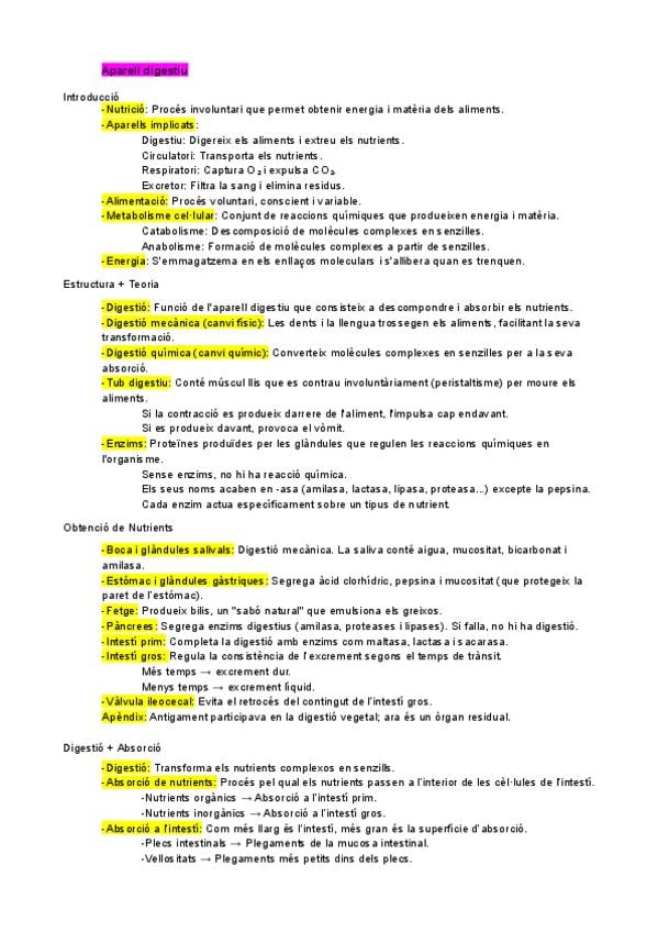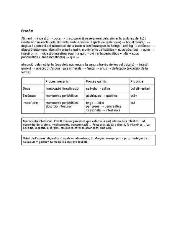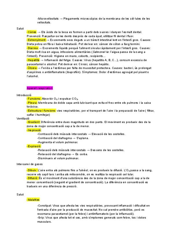 Resum tipus Esquema Biologia 3ESO en Català Temari Aparell respiratori i digestiu
