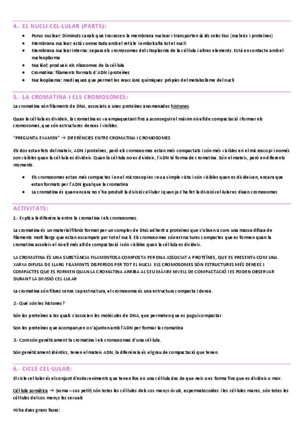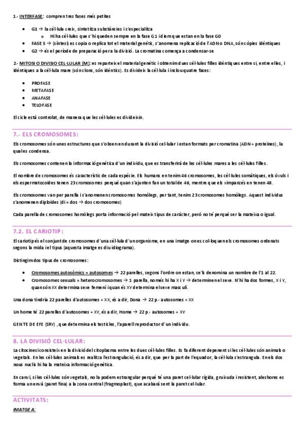 Apunts de nivell de 4t d’ESO sobre la cèl·lula en català/valencià (mitosi, meiosi, interfase, orgànuls, diferències, funcions…) (31 fulles + vocabulari biològic + exercisis corregits) (correccions més extenses i menys, segons la profunditat a la que vulgu
