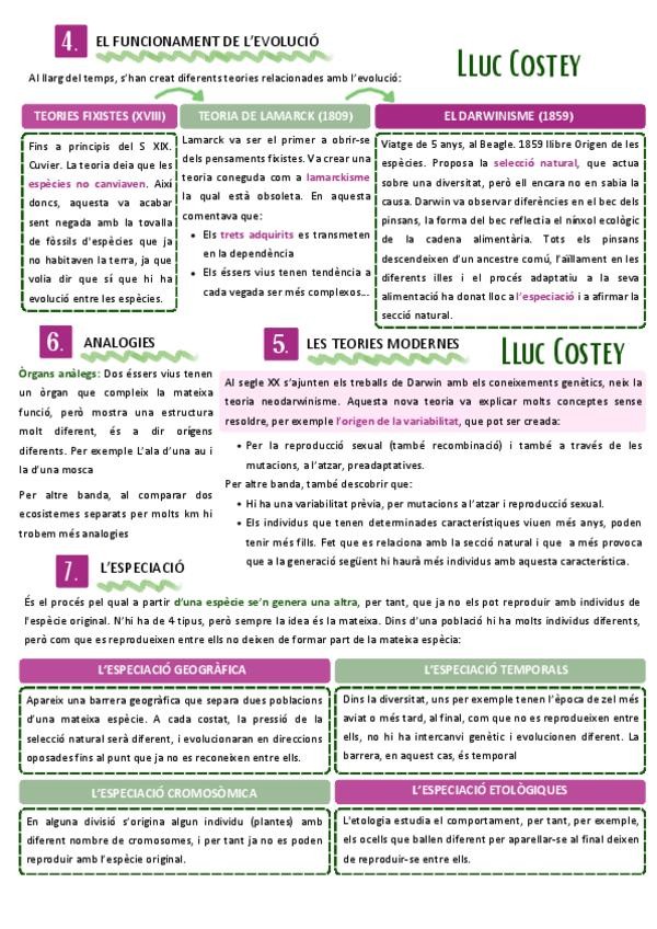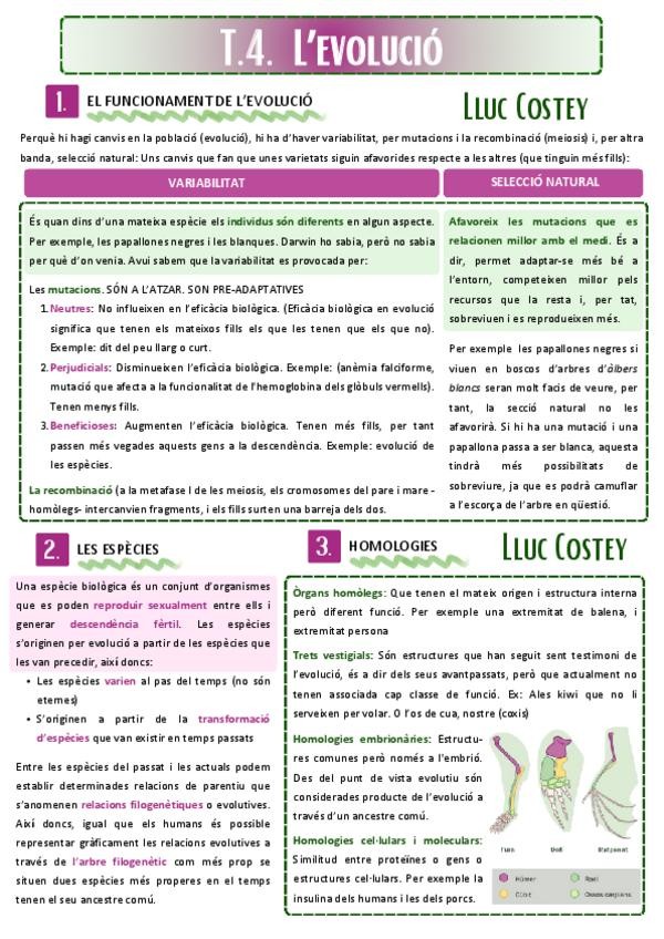 ¡Descárgate esteos apuntes de la evolución en el que se abordan temas como las diferentes teorías, la variabilidad y la sección natural, la especiación, las homologías…!