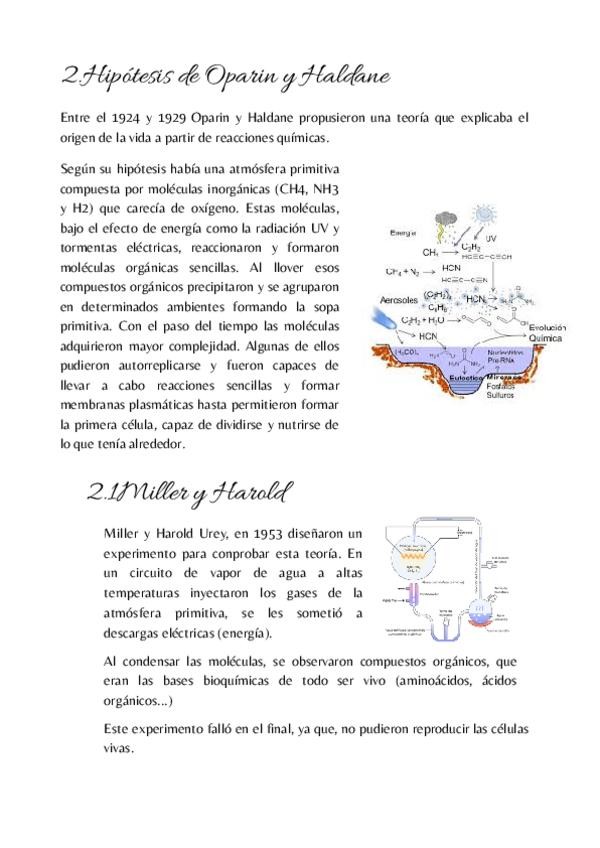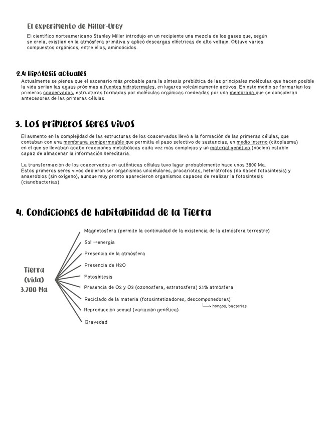 Tema: El origen de la vida Hipótesis (2) Los primeros seres vivos, condiciones de habitabilidad de la tierra.