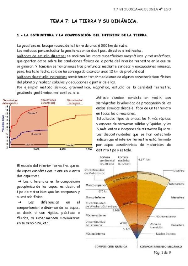 el interior de la tierra: ondas sísmicas, discontinuidades, modelos, datos comprobados...etc