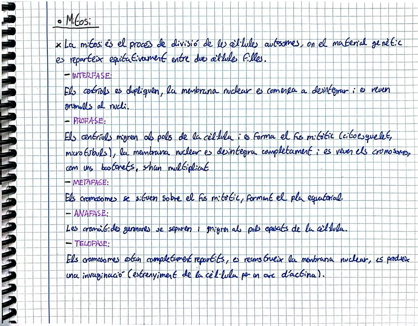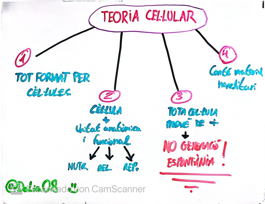 Esquema/mapa mental (optimizado con IA, con base en mis apuntes personales) sobre el tema de genética: meiosi, mitosi i teoria cel·lular.