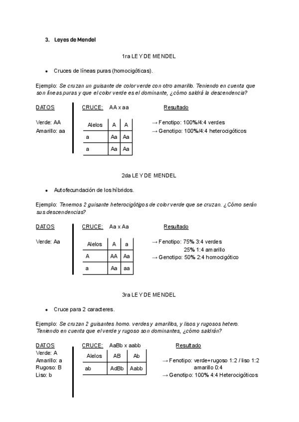 Ejercicios tercera ley de Mendel explicaciones, ejercicios resueltos y más de genética para cuarto eso