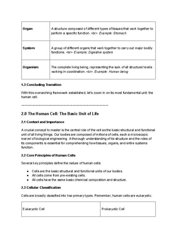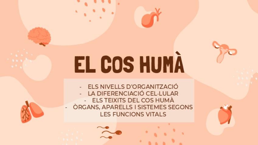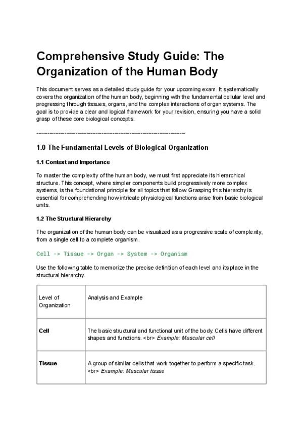 Apuntes del Tema 1 de Biología 3° ES0: La organización del ser humano con niveles de organización, célula eucariota, tejidosy aparatos del cuerpo. Incluye explicaciones de núcleo, orgánulos, diferenciación celular, tejidos humanos y homeostasis para estud