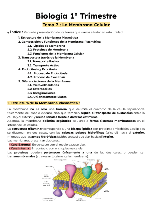 Todo el Tema 7 de Biología a cerca de La Membrana Celular