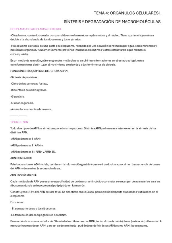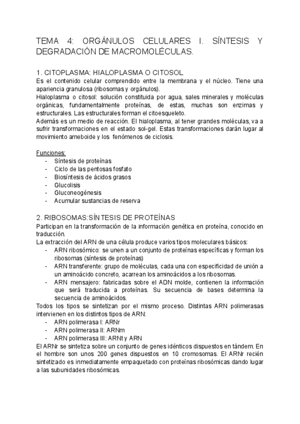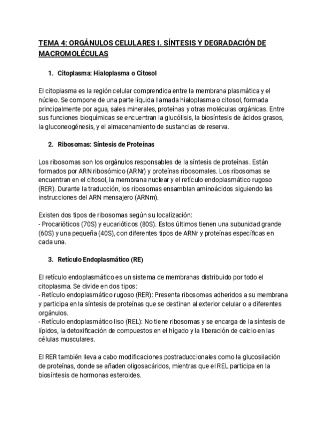 Tema 4: Orgánulos celulares, síntesis y degradación de macromoléculas