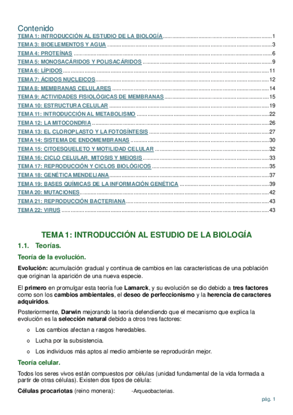 He publicado nuevos apuntes de 1º Biología: Temario