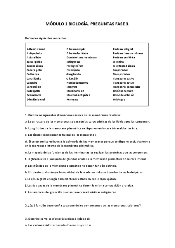 Módulo 1. Membrana celular