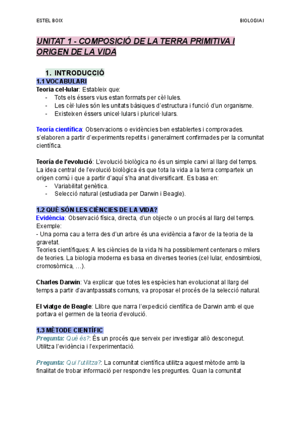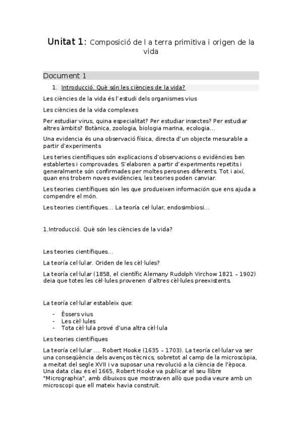 He publicado nuevos apuntes de 1º Biología: UNITAT 1 - Composició de la Terra Primitiva i Origen de la Vida.pdf