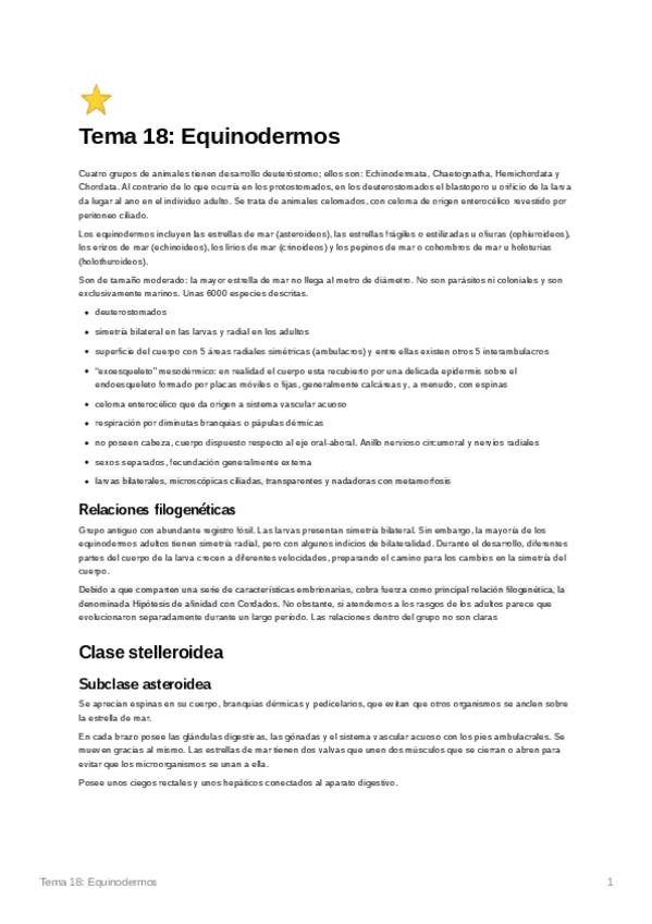 He publicado nuevos apuntes de 1º Biología: Tema18Equinodermos.pdf