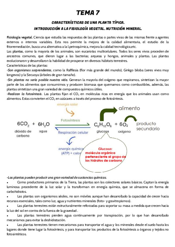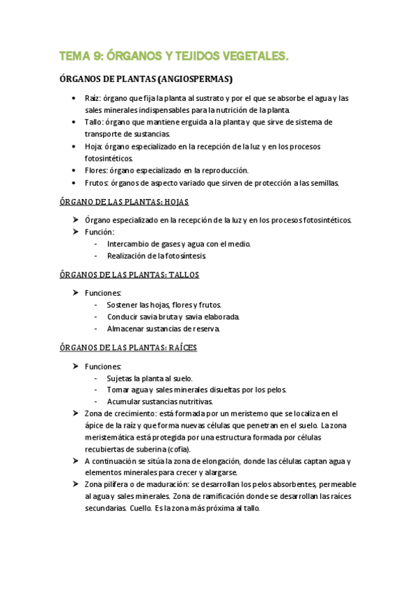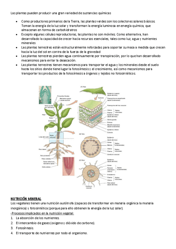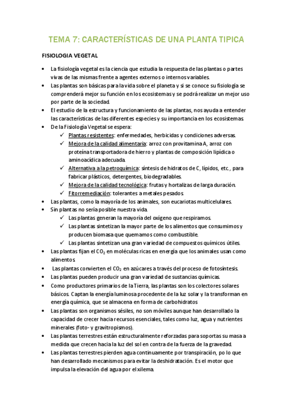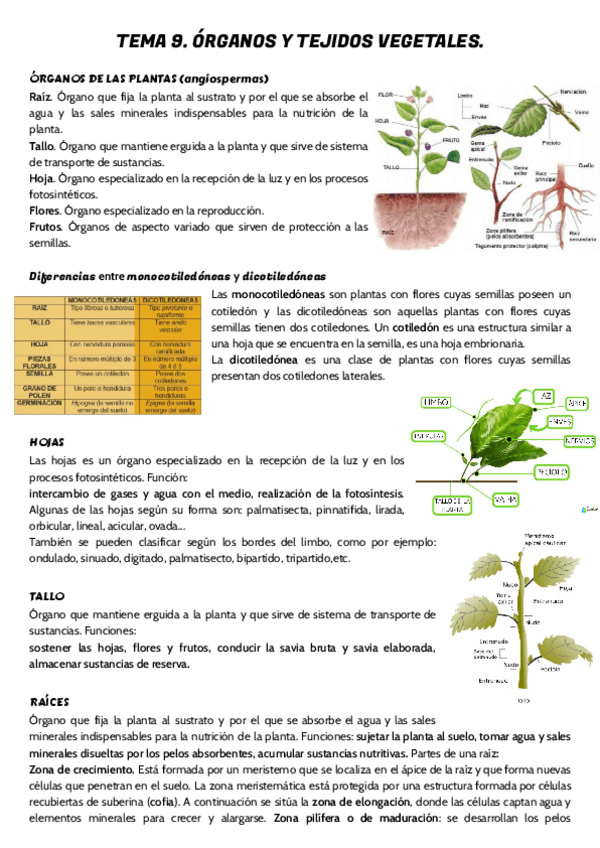 Resumen de temas de biologia vegetal con lo más importante para aprobar, incluye todas las imágenes que pueden preguntar y sus partes.