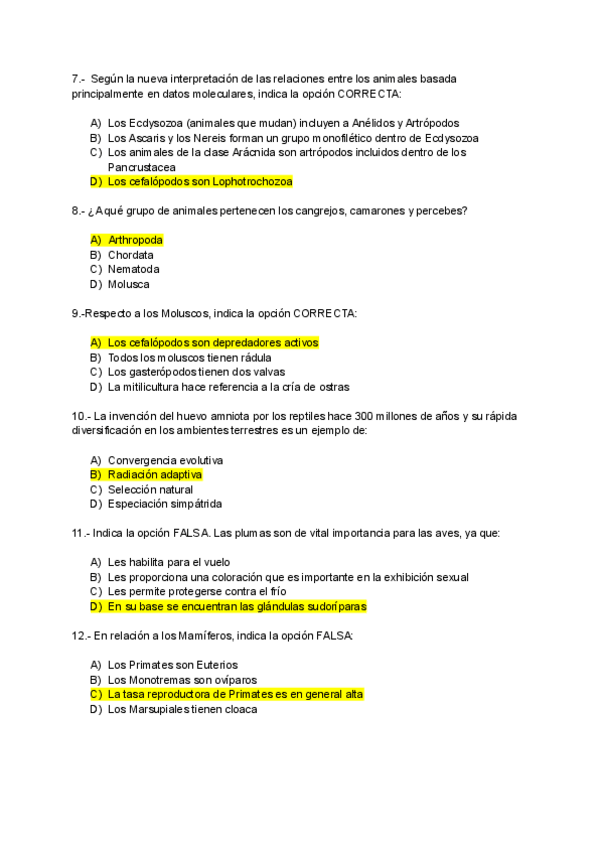 EJERCICIOS BIOLOGÍA ANIMAL