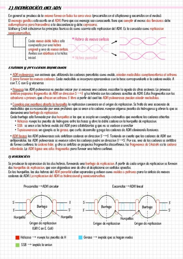 Apuntes del bloque de genética: replicación del ADN. Para 2º de bachiller y PAU.