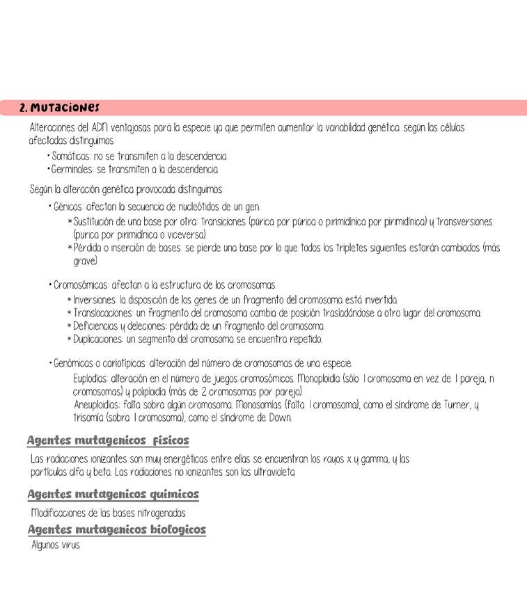 Aqui tengo el bloque 2 de genetica molecular de biologia de 2 de bachillerato, todo lo que necesitas saber sobre mutaciones y procesos de traducion, transcripcion y replicacion.