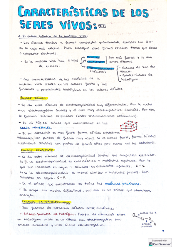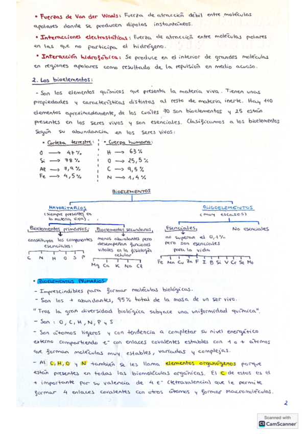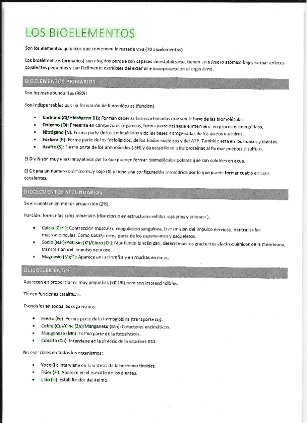 Resúmenes hechos a mano del tema 1 biología de 2 bachillerato. Le faltan algún ejemplo y función de oligoelementos.