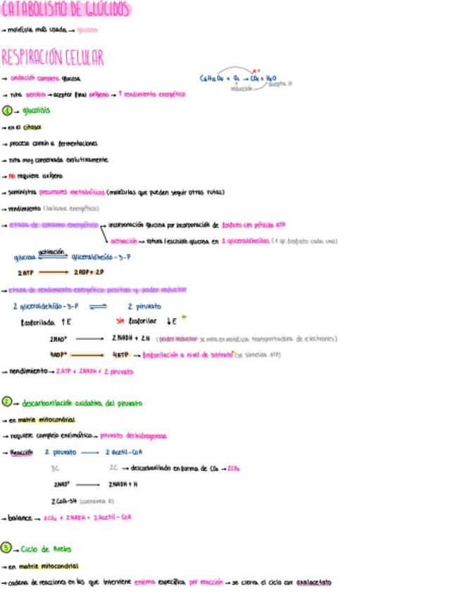 Resumen/Esquema explicativo de los procesos del catabolismo de azúcares (también de lípidos y proteínas) para Evau. Nota de 10 en Biología.