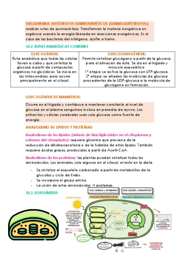 Resumen/Esquema explicativo y visual de los procesos anabólicos (Fotosíntesis --> Fase dependiente de la luz e independiente). Nota de biología de 10.