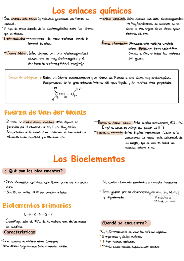 Unidad de bioelementos, agua y sales minerales muy sencillo y con colores y esquemas para un estudio visual y sencillo.