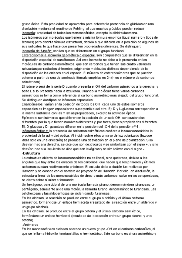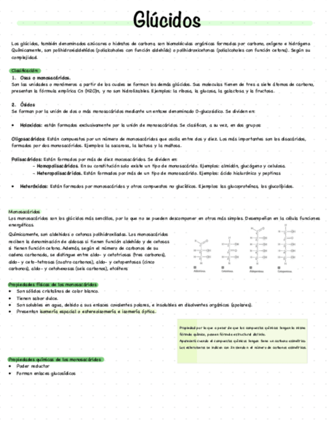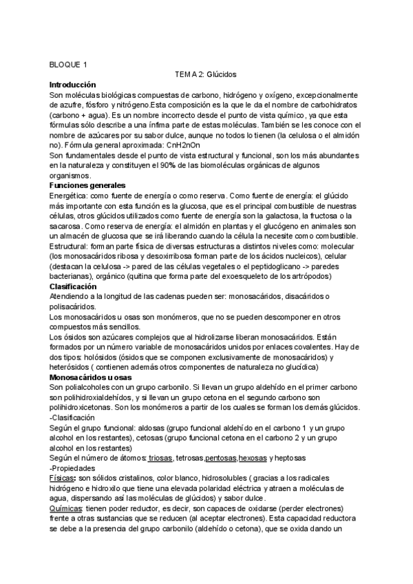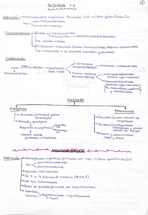 Unidad glúcidos, bien resumido y con esquemas visuales para estudiar de forma sencilla