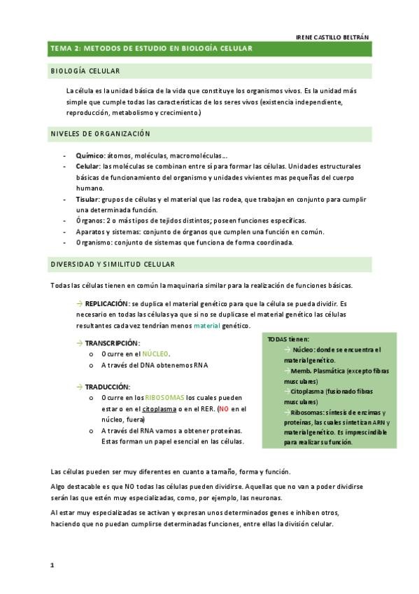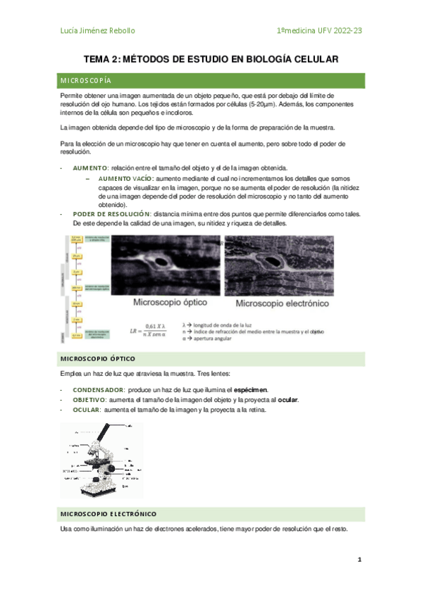 He publicado nuevos apuntes de 1º Biología: Tema 2 - Métodos de estudio en biología celular.pdf