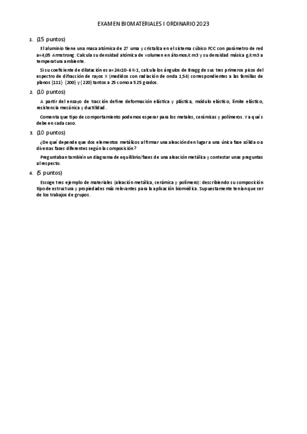 He publicado nuevos examenes de 2º Biomateriales I: Ordinario-2023-biomateriales-I-enunciado.pdf