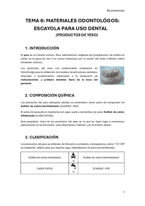 He publicado nuevos apuntes de 2º Biomateriales: Tema-6-Escayola-para-uso-dental-Productos-del-Yeso.pdf