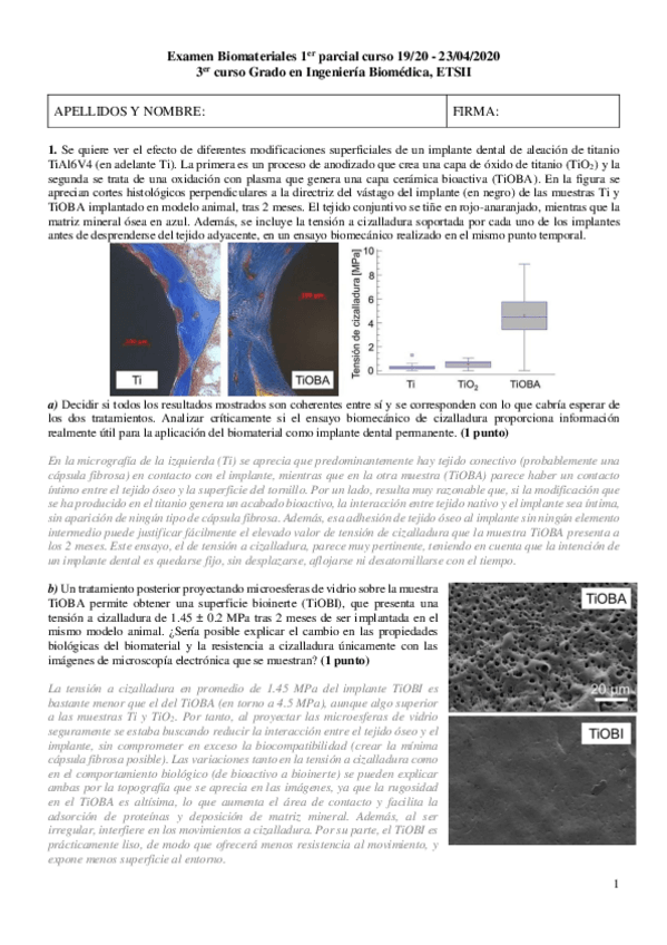 He publicado nuevos examenes de 3º Biomateriales: 1Parcial-19-20-desarrollado.pdf