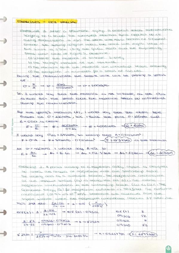 He publicado nuevos apuntes de 3º Biomaterials Science and Engineering: Exercises-CE1-Parcial.pdf