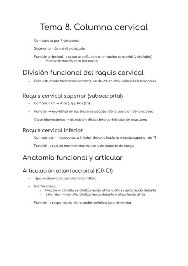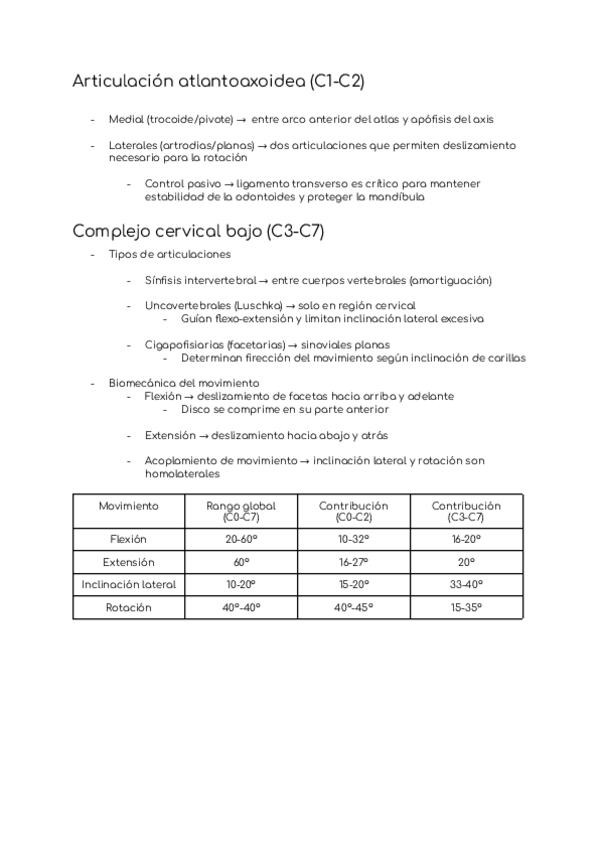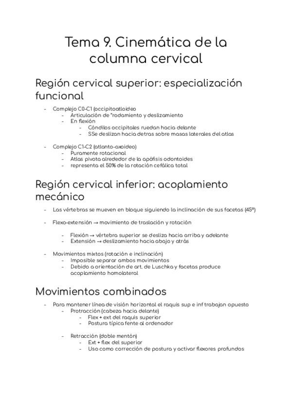 Región cervical superior e inferior, movimientos combinados, cinética de la cabeza y cuello, cinética global del raquis y riesgos biomecánicos