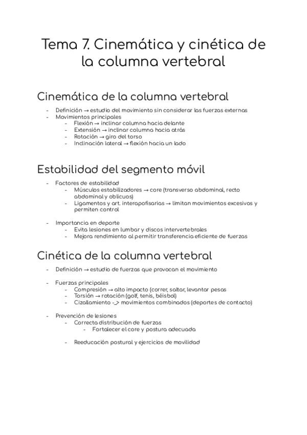 Cinemática de la columna, estabilidad del segmento, cinética de la columna, fuerzas que actúan