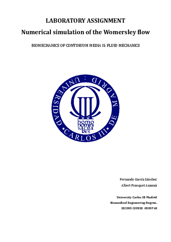 He publicado nuevos practicas de 2º Biomecánica del medio continuo II (fluidos): Lab-NUMERICAL-SIMULATION-OF-THE-WOMERSLEY-FLOW.pdf
