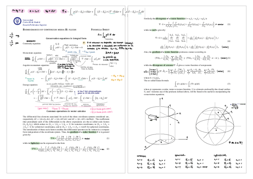 He publicado nuevos apuntes de 2º Biomecánica del medio continuo II (fluidos): Formula Sheets Anotadas