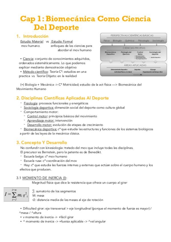Apuntes completos biomecánica capítulo 1. La biomecánica como ciencia del deporte